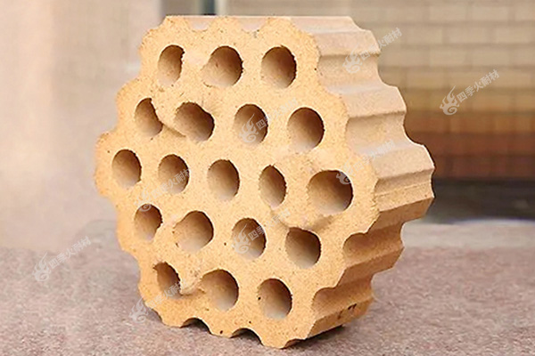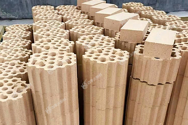 1 格子砖。格子砖主要用在热风炉的蓄热室里,由结构一定的带格孔的格子砖有序排列,格子砖上下通孔可任由气体通过。根据不同温度区域的技术要求,一般选用硅质格子砖、粘土砖等,在一些热风炉里,也有选择高铝砖、莫来石砖、硅线石砖等。