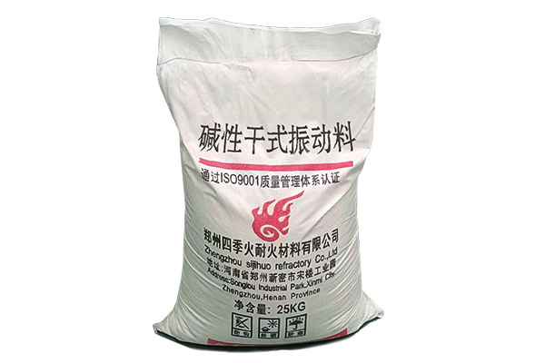 碱性干式振捣料是由烧结镁砂,或烧结镁钙砂和少量的低温结合剂与中、高温烧结剂组成的。加入低温结合剂的目的在于将干式振捣料填充于中间包永久衬与内模胎上的附着振动器振实后,带模烘烤至200-300℃后即可脱模,低温结合剂的热固性产生结合强度而使衬体具有保型性。这类低温结合剂是固态粉状酚醛树脂。